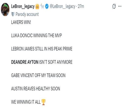 北京时间1月19日,湖人背靠背第二场110-93大胜猛龙,这场比赛帮助湖人稳住了西部第六的席位。此役41岁的勒布朗继续出战背靠背的第二场,卢卡-东契奇、艾顿两人也得以复出,最终在詹姆斯、艾顿、东契奇三人20+的情况下拿到大胜,这场胜利或许能激励一下湖人的士气。